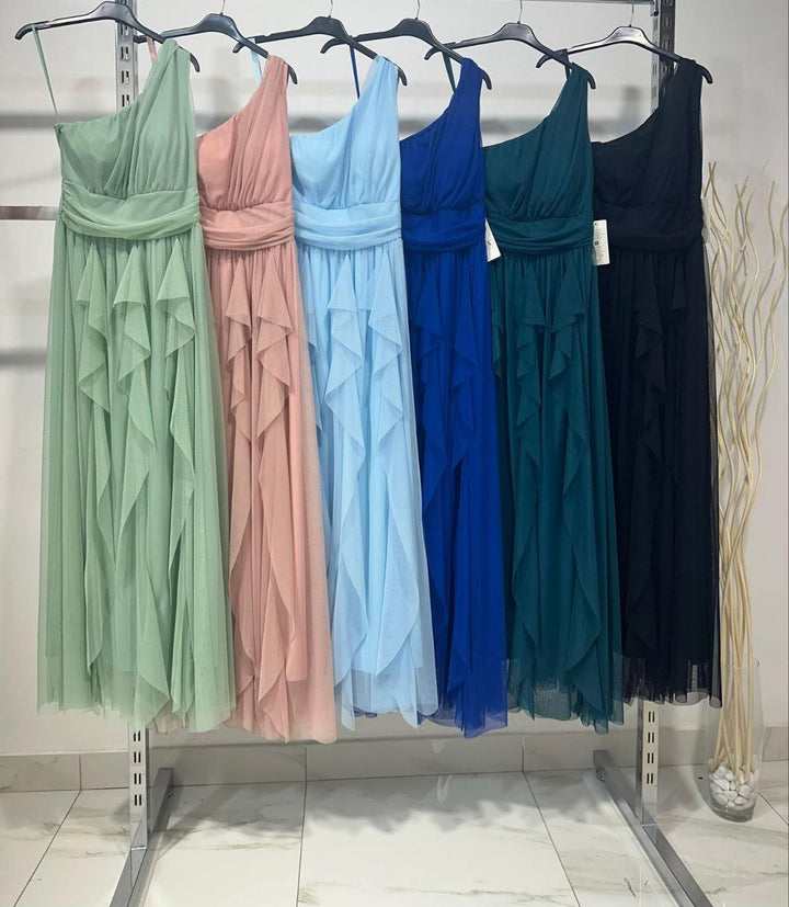 Il nostro Abito elegante monospalla aggiunge un tocco di classe e sensualità, grazie alla sua composizione del 3% di elastan. Comodo e allo stesso tempo raffinato, è perfetto per ogni occasione.