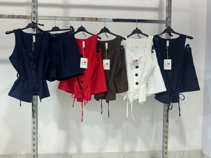 Il Completo Ghandi unisce eleganza e praticità con un design raffinato. Composto da pantaloncino e gilet regolabile al giro vita, offre una vestibilità personalizzata e comfort ottimale. Perfetto per chi cerca uno stile sofisticato senza rinunciare alla funzionalità.