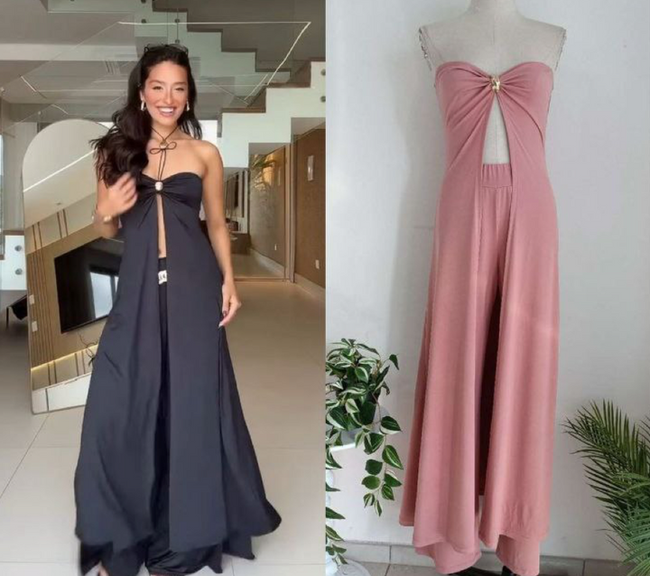 Il Completo Jasmine è un'ottima scelta per chi cerca eleganza e sensualità. Composto da un top e un pantalone di tendenza, questo completo offre uno stile alla moda che non passerà inosservato. Indossalo per sentirti sicura e pronta per qualsiasi occasione speciale.