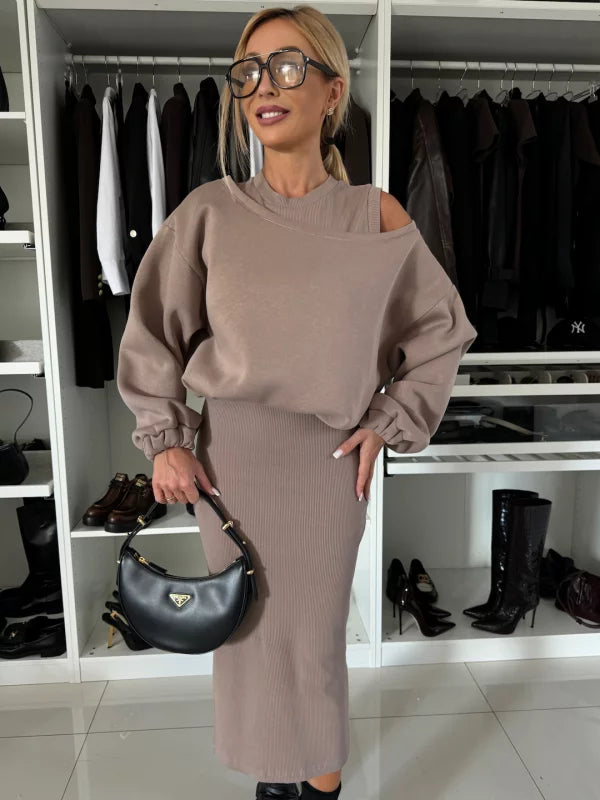 Completo elegante e alla moda, il Completo Lifestyle è la scelta perfetta per un look versatile e sofisticato. Con un vestito aderente che mette in risalto la tua figura e una felpa regolabile con laccio, questo completo ti farà sentire sicura e alla moda in ogni occasione.