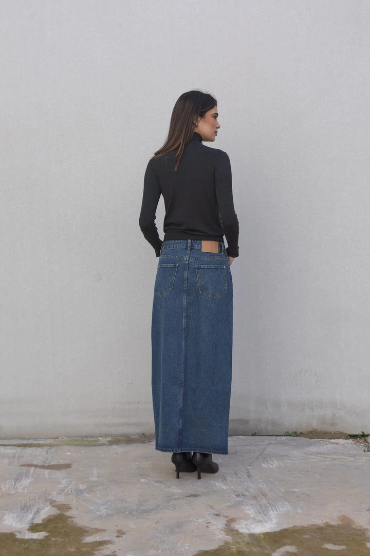 GONNA LUNGA IN DENIM CON SPACCO FRONTALE