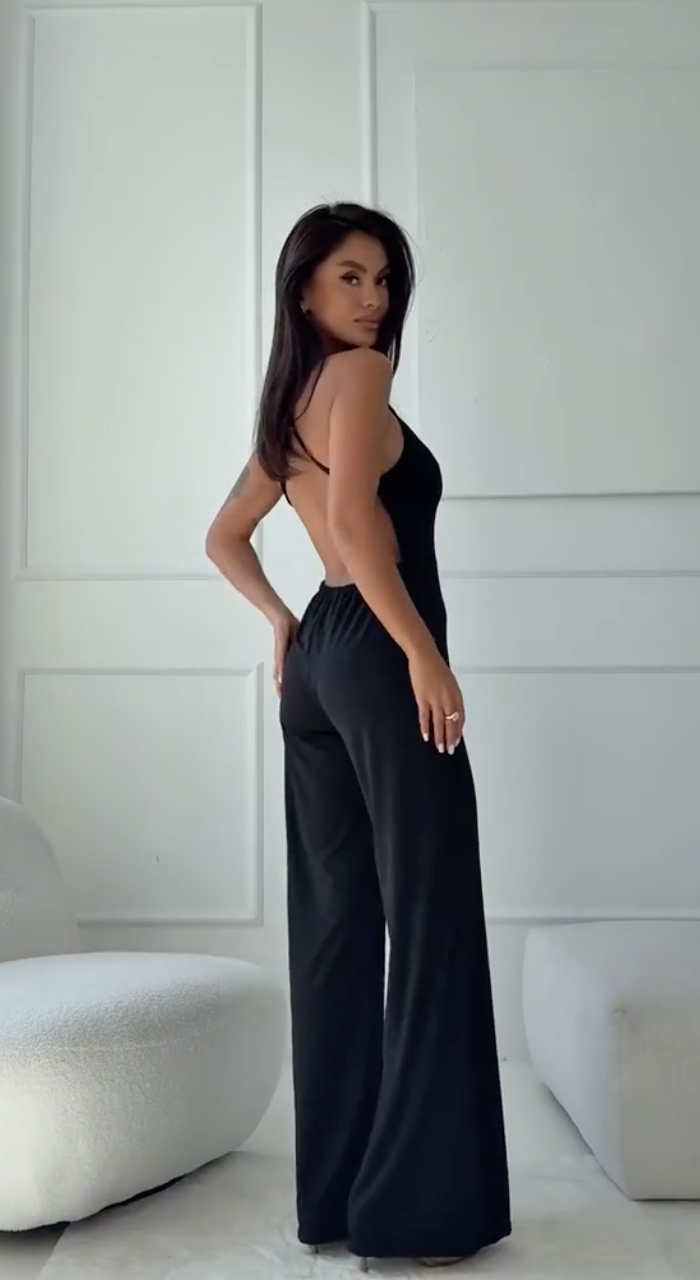 Questo tutone nero si distingue per la sua elegante schiena scoperta, che aggiunge un elemento di raffinatezza al capo. Realizzato con materiali di qualità, offre una vestibilità impeccabile adattandosi a diverse silhouette. La sua versatilità lo rende perfetto sia per occasioni formali che per eventi più casual, garantendo sempre un look sofisticato e contemporaneo.