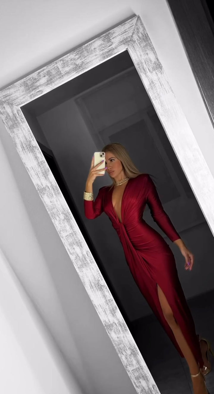 Fatti notare con il Vestito Cloè elegante e alla moda. Il suo scollo profondo e nodo finale donano un tocco di sensualità, mentre il suo drappeggio e spacco aderenti slanciano la tua silhouette. Perfetto per far risaltare la tua femminilità.